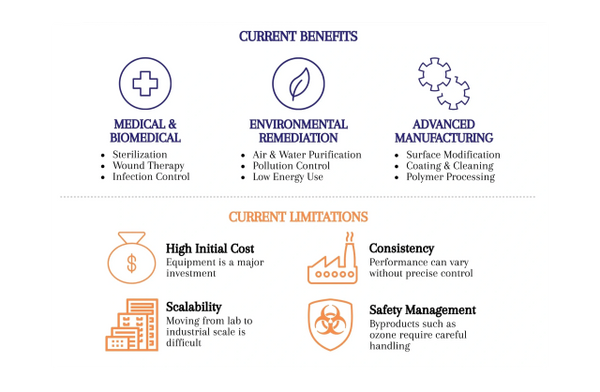 While each plasma type makes meaningful contributions to advancements in specific domains, the eco-friendliness and adaptability of cold plasma have made it a prominent focus of recent innovation. Nevertheless, the growing integration of plasma across industries highlights the broader advantages—and inherent challenges—of plasma technology as a whole.