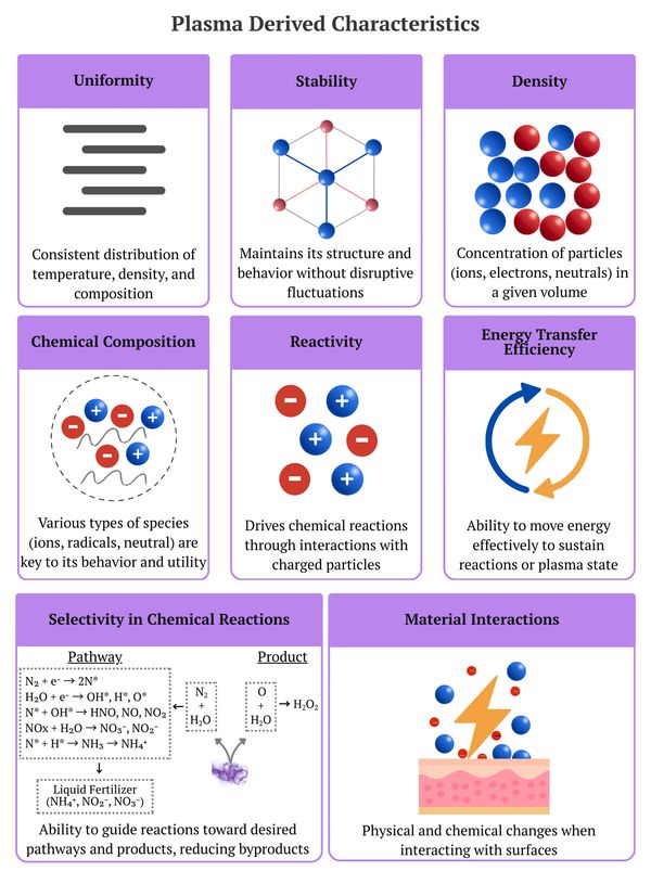 Plasma, often referred to as the fourth state of matter, is composed of a dynamic mixture of ions, electrons, and neutral particles. While its fundamental characteristics—such as ionization and electromagnetic behavior—define plasma at a basic level, it is the derived characteristics of plasma that provide deeper insight into its complex behavior and diverse applications. Derived characteristics, such as stability, uniformity, density, and reactivity, emerge from the interplay of fundamental plasma properties, shaping the plasma’s unique dynamics and enabling its wide-ranging applications. In natural plasma environments, such as stars, lightning, or the ionosphere, these characteristics often occur spontaneously under extreme and often uncontrollable conditions. Conversely, artificial plasmas are carefully engineered to exhibit these traits, designed for specific scientific, industrial, and technological purposes. The ability to control derived characteristics in artificial plasma is critical for advancing innovations in energy production, materials science, healthcare, and agriculture, demonstrating the vast utility of this remarkable state of matter.